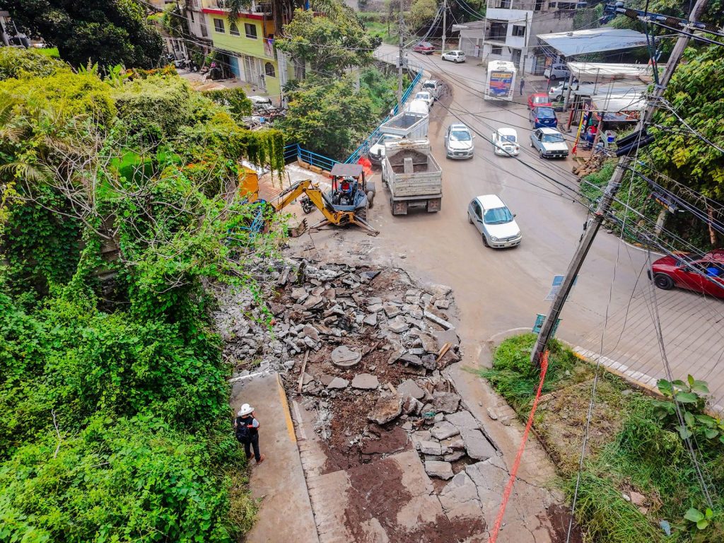 El Ayuntamiento de Cuernavaca, a través de la Secretaría de Desarrollo Urbano y Obras Públicas (SDUyOP), realiza trabajos de reparación en la vialidad entre avenida Cuernavaca y calle Tres Cruces, tras los daños provocados por la intensa lluvia del viernes por la noche. Por seguridad, el tramo afectado permanecerá cerrado temporalmente.