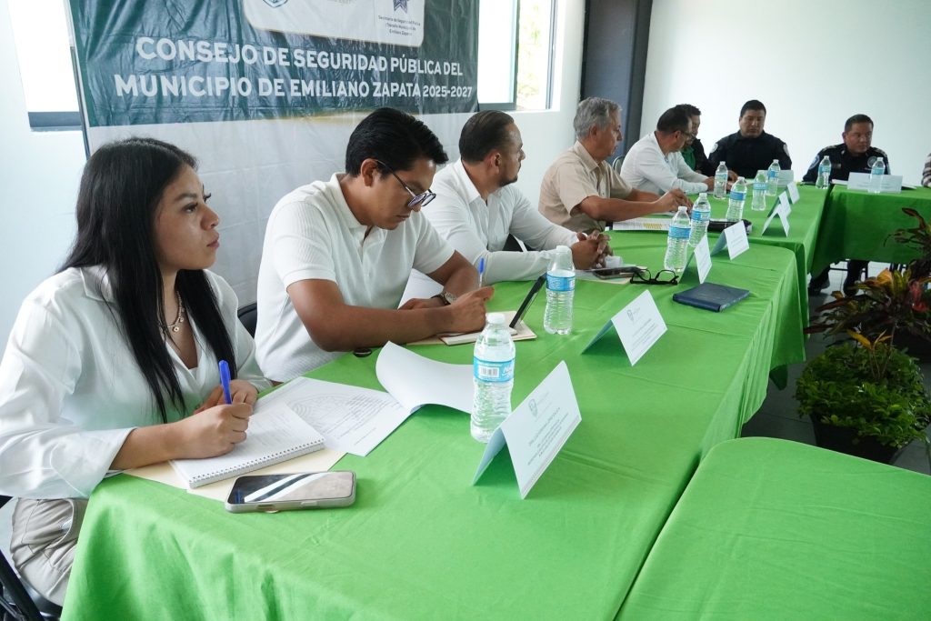 Durante la Cuarta Sesión Ordinaria del Consejo de Seguridad Pública Municipal, autoridades del Ayuntamiento de Emiliano Zapata presentaron los avances más recientes en materia de Seguridad Pública, Tránsito Municipal, Protección Civil, Rescate y Bomberos, así como en Prevención del Delito.